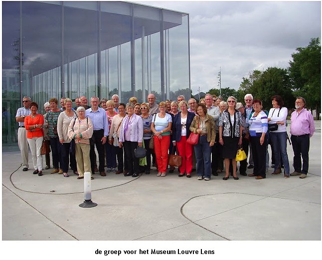 Om 10 uur startten we te Lens met een 2,5 uur durende rit door de regio: "De la Mine au Louvre-Lens" schetste de geschiedenis van de mijnstreek en de reconversie. Na een "menu du chti" in het centrum van Lens was het tijd voor het Musée Louvre Lens waar we een geleid bezoek brachten aan de tentoonstelling "Les désastres de la guerre". Nadien was er ruim vrije tijd voor La Galerie du Temps en de museumboetiek.